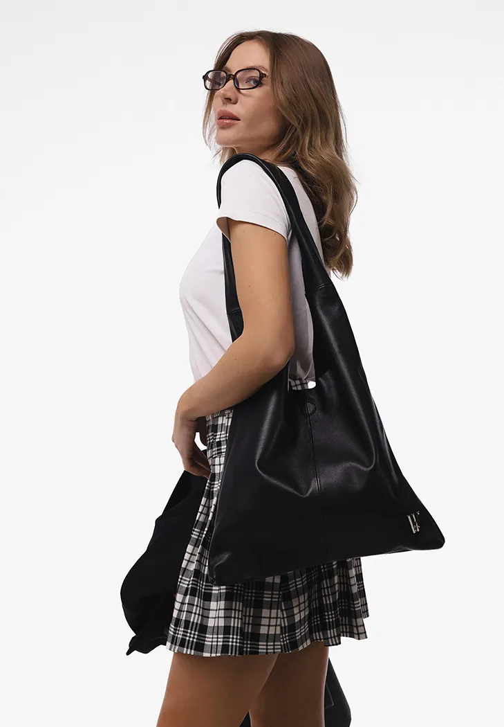 Кожаная сумка-шопер Nika черного цвета – это идеальное сочетание стиля и практичности, подходящее для занятых будней. Изготовленная из высококачественной натуральной зернистой кожи, она гарантирует долговечность и изысканность в одном аксессуаре. Ее универсальный дизайн делает сумку подходящей как для повседневного использования, так и для особых случаев.