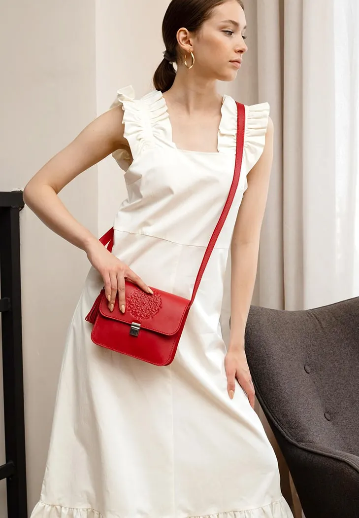 Кожаная женская бохо-сумка Лилу красная