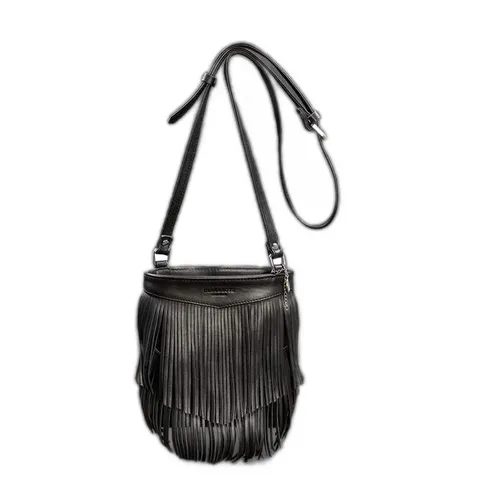 Кожаная женская сумка с бахромой мини-кроссбоди Fleco черная