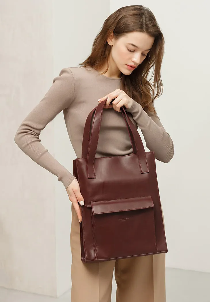 Бордовая кожаная сумка шоппер Бетси будет прекрасным компаньоном в путешествиях, так как её вместительность и прочность позволяют безопасно перевозить личные вещи.