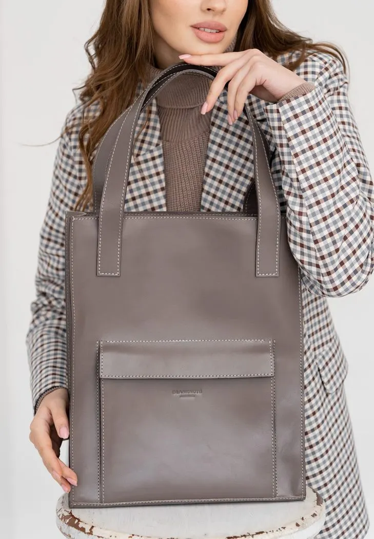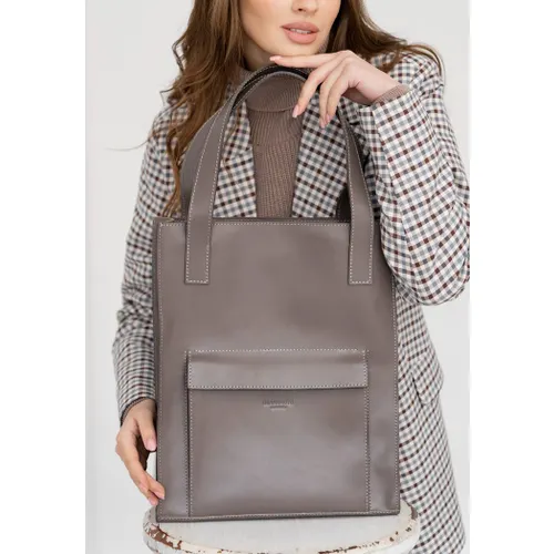 Кожаная женская сумка шоппер Бетси с карманом темно-бежевая Краст