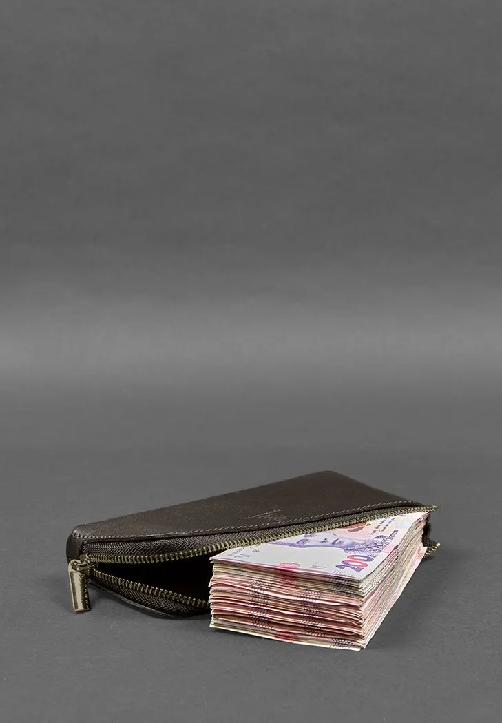 Кожаное портмоне-купюрщик на молнии 14.0 темно-коричневое