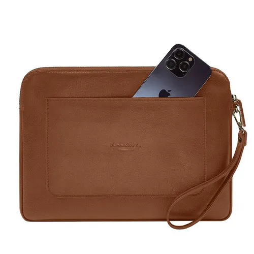 Кожаный чехол для ноутбука на молнии с карманом и петлей на руку Светло-коричневый