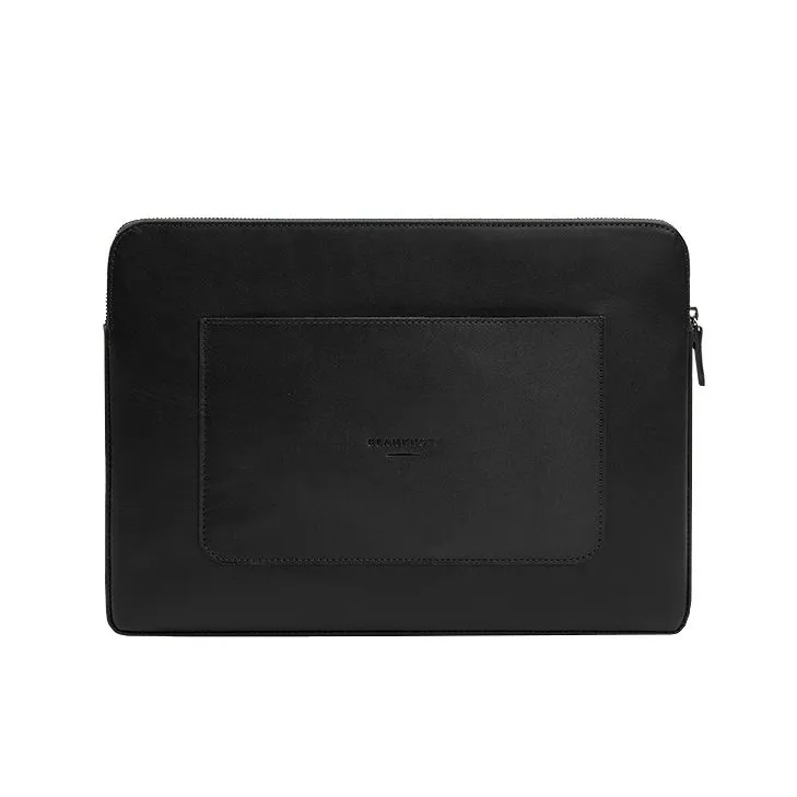 Кожаный чехол для ноутбука на молнии с хлястиком и карманом Черный