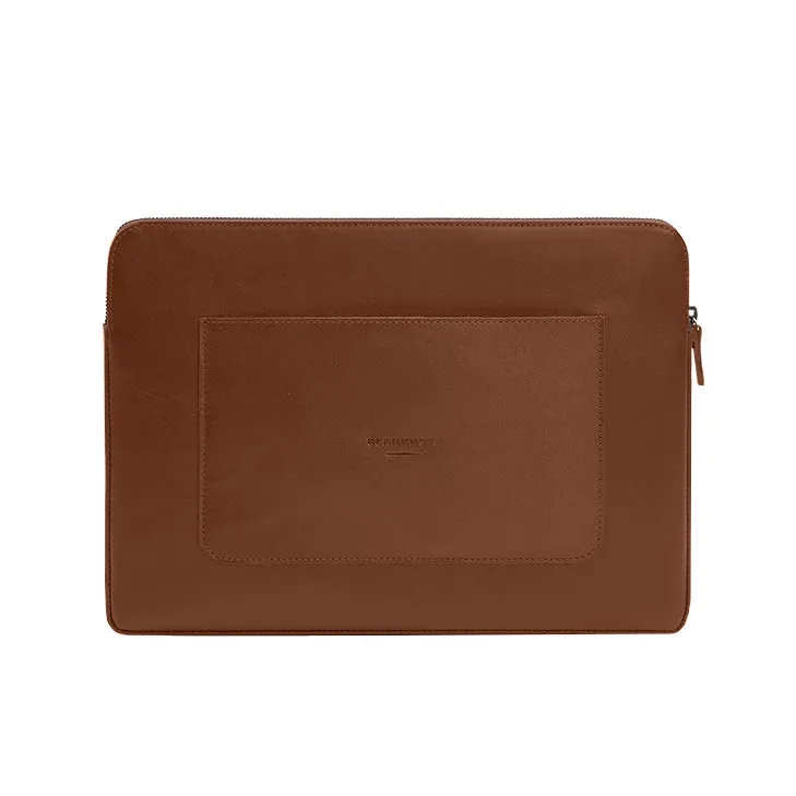 Кожаный чехол для ноутбука на молнии с хлястиком и карманом Светло-коричневый