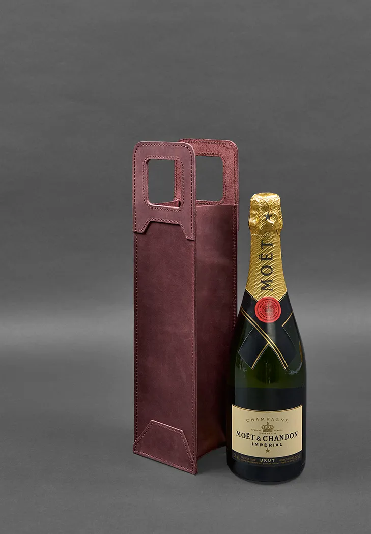 Кожаный чехол для вина 2.0 бордовый Crazy Horse