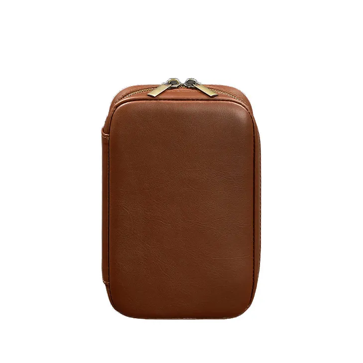 Кожаный дорожный органайзер для проводов, косметичка-несессер 7.0 светло-коричневый краст