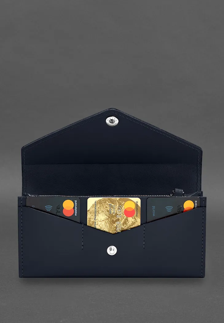Кожаный клатч (портмоне) на кнопке 5.0 Синий