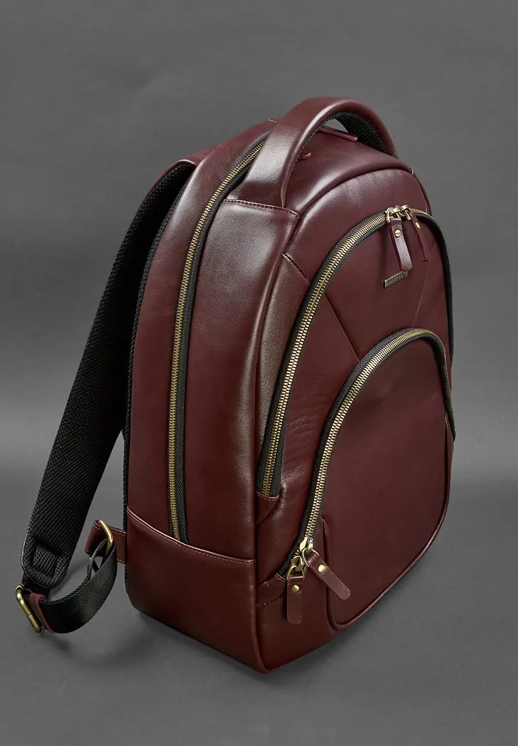 Кожаный рюкзак бордовый краст