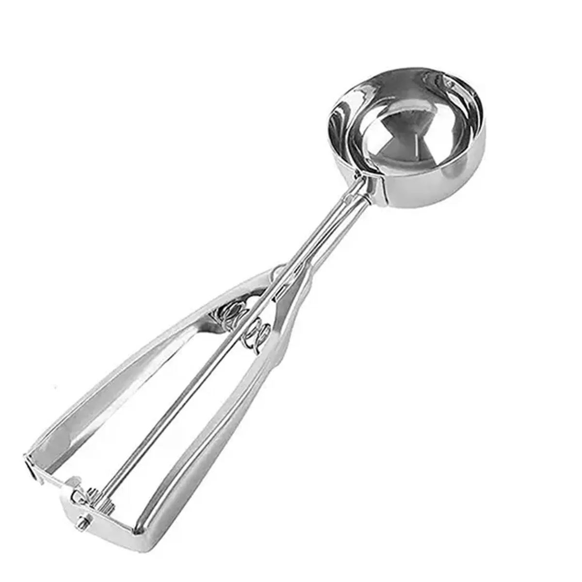 Пружинный механизм внутри ложки отвечает за комфортный выброс приготовленных шариков мороженого. Эргономичная ручка с усиленной конструкцией позволяет надежно удерживать ложку даже при длительном использовании, снижая нагрузку на кисть и предотвращая скольжение. Это важно для быстрого и аккуратного сервиса.