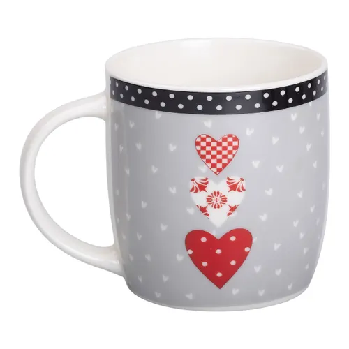 Особенность данной модели — это стильный дизайн с расцветкой в сером цвете с красными элементами, а также росписью, которая придает ей особый внешний вид и делает кружку уместной не только для повседневного применения, но и для особых случаев, например, дня святого Валентина или романтических мероприятий.