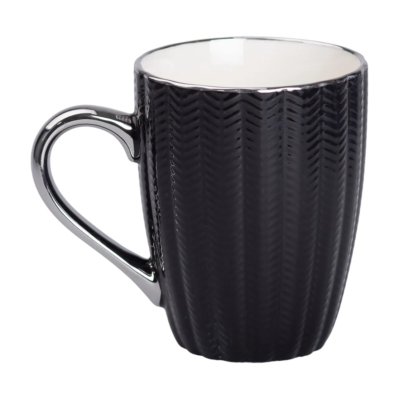 Кружка керамическая 400 (мл) с серебристым ободком и ручкой Черная RX-N231315B