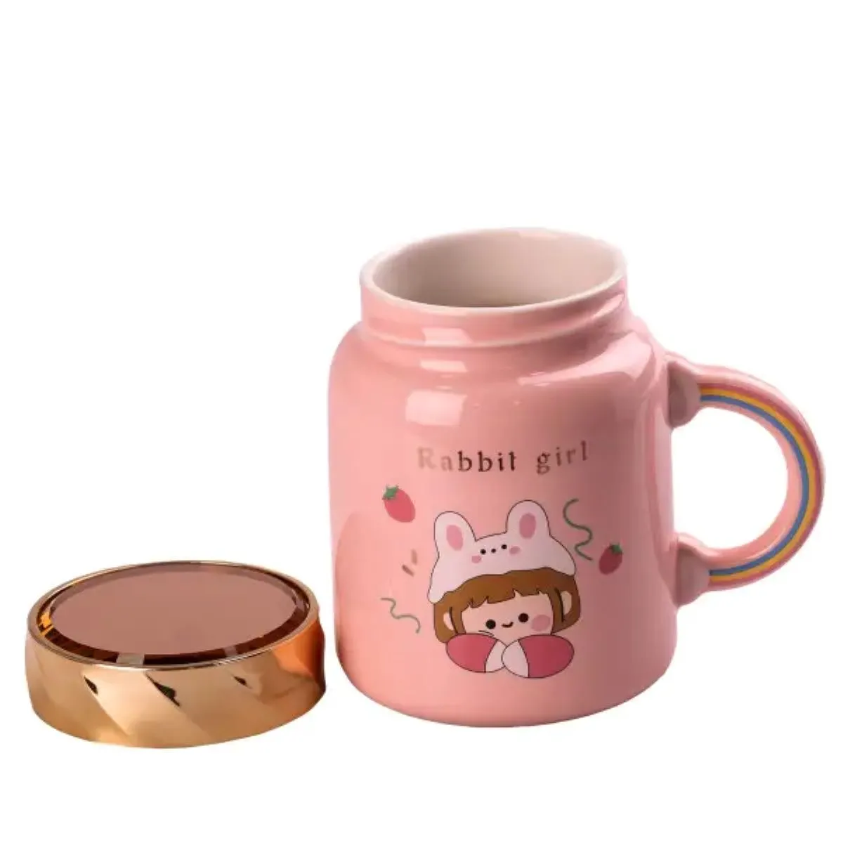 Кружка керамическая 420 мл с крышкой Розовая HPCY8240P