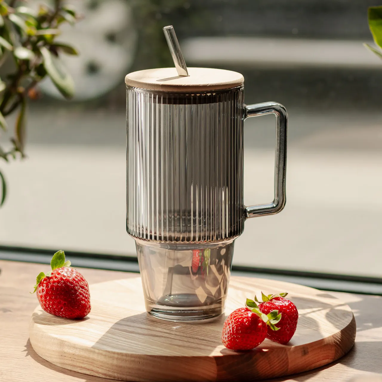 В первую очередь, это сочетание качественного стекла с экологичной бамбуковой крышкой и многоразовой трубочкой. Дизайн объединяет в себе практичность, эстетичность и внимание к деталям.