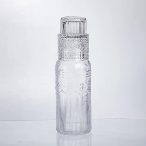 Кувшин выполнен из высококачественного прозрачного стекла с рифлёной поверхностью, придающей изделию дополнительную функциональность и привлекательность. Его высота составляет 25 см, верхний диаметр — 4,5 см, а нижний — 8 см. Объем кувшина достигает 700 мл, что позволяет использовать его для различных напитков, включая воду, соки, компоты и лимонады.