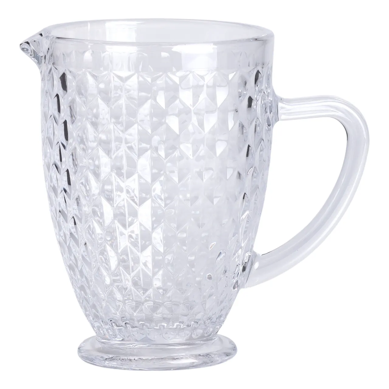 Конструкция включает удобную стеклянную ручку, эргономично вписанную в общий дизайн. Такая ручка облегчает удержание кувшина при наливании и минимизирует риск случайного пролития жидкости. Высота изделия составляет 18.5 см, диаметр горлышка — 12 см, что обеспечивает комфортный доступ к содержимому и возможность добавления льда или фруктов.