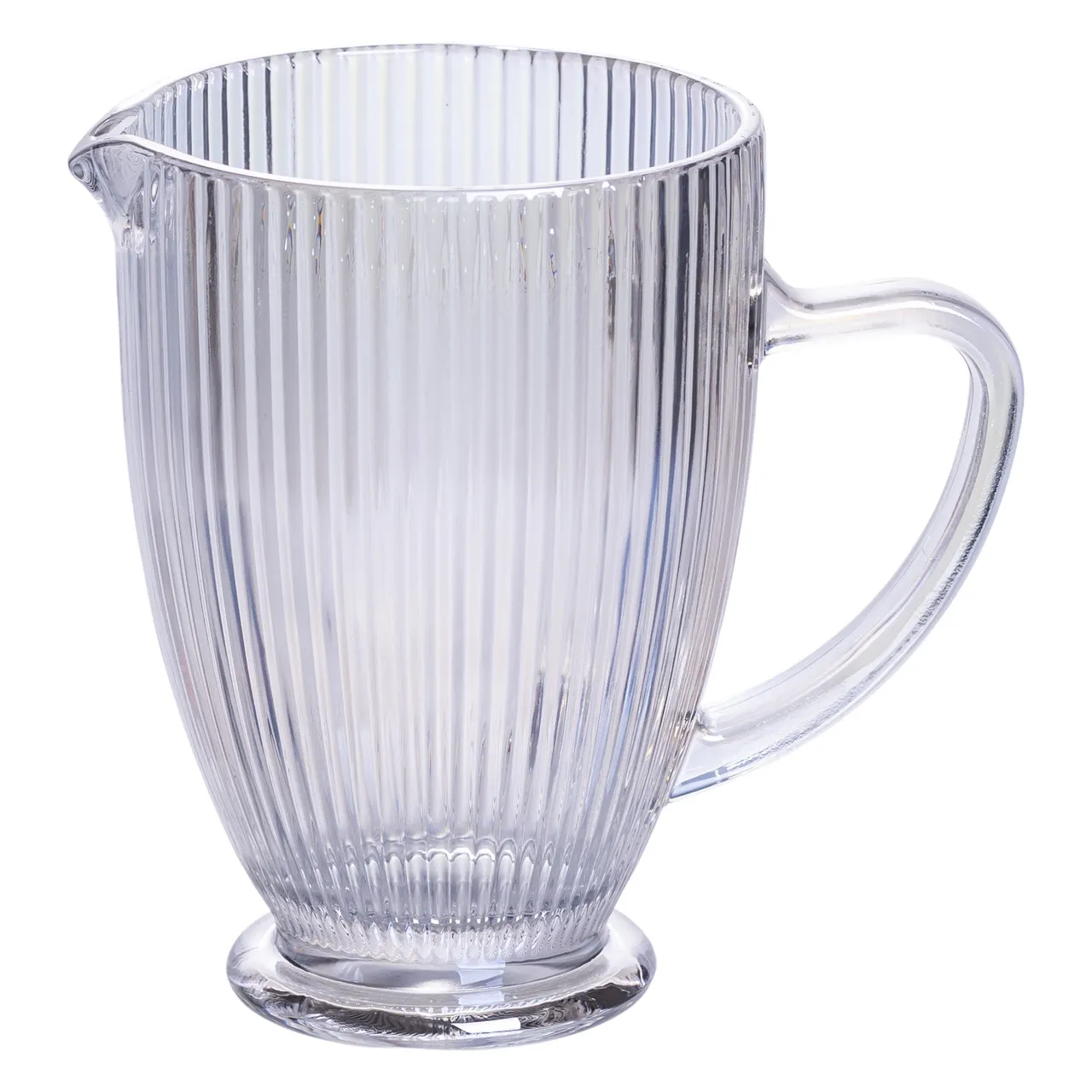 Кувшин с ребристой поверхностью отлично впишется в любой интерьер кухни или столовой благодаря своей универсальной форме и прозрачности. Для эффектной подачи напитков используйте свежие фрукты или ягоды внутри кувшина, что подчеркнет визуальную привлекательность и подарит дополнительный вкус.