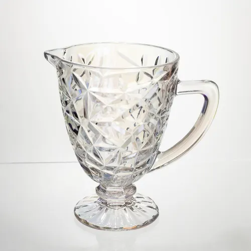 Кувшин для напитков из толстого стекла объемом 1.2 л. Прозрачный материал и сбалансированная форма обеспечивают удобство использования и аккуратный внешний вид. Поверхность кувшина полностью украшена рельефным геометрическим узором из треугольных граней. В нижней части грани имеют вырезы, создающие выразительный трехмерный эффект и заметную игру света. Декор равномерный и не перегружает общий дизайн. Высота 18 см и диаметр 13 см обеспечивают стабильность на столе. Конструкция на ножке с плавным переходом в основание придает изделию целостности, а толстое стекло подчеркивает практичность и надежность. Основные характеристики кувшина для напитков: Тип: кувшин для напитков; Объем: 1.2 л; Материал: толстое стекло; Высота: 18 см; Диаметр: 13 см; Конструкция: на ножке. Кувшин идеально подходит для использования дома, в кафе или на праздничном столе. Его можно мыть вручную или в посудомоечной машине. Посуда, сочетающая функциональность и привлекательный вид для ежедневной и особой сервировки.