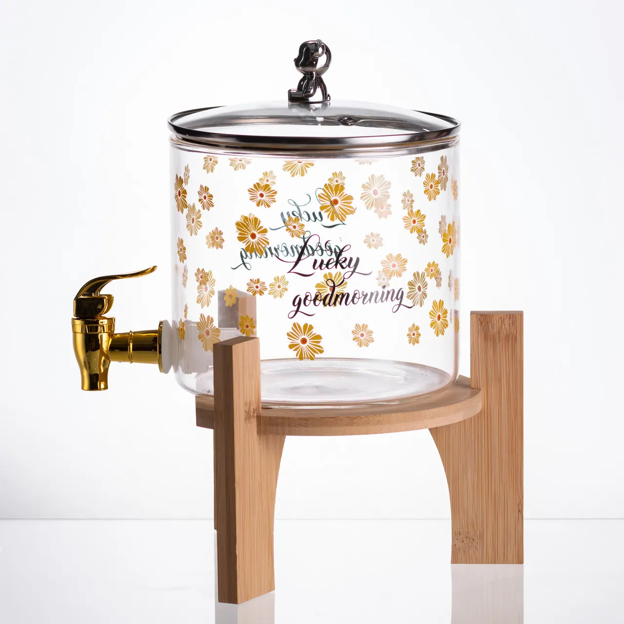 Материалы высокого качества, такие как стекло и натуральное дерево, обеспечивают долговечность и надежность изделия. Кран с герметичным клапаном позволяет контролировать подачу жидкости, сводя к минимуму риски протечек и разбрызгивания.