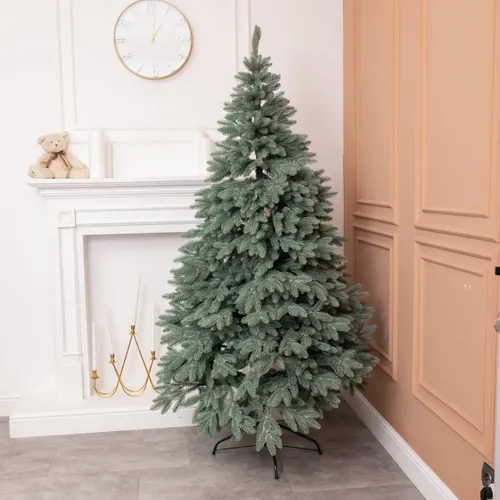 Голубой оттенок веточек позволяет комбинировать елку с различными вариантами украшений. Подойдут серебристые, белые и голубые игрушки для создания гармоничного образа.