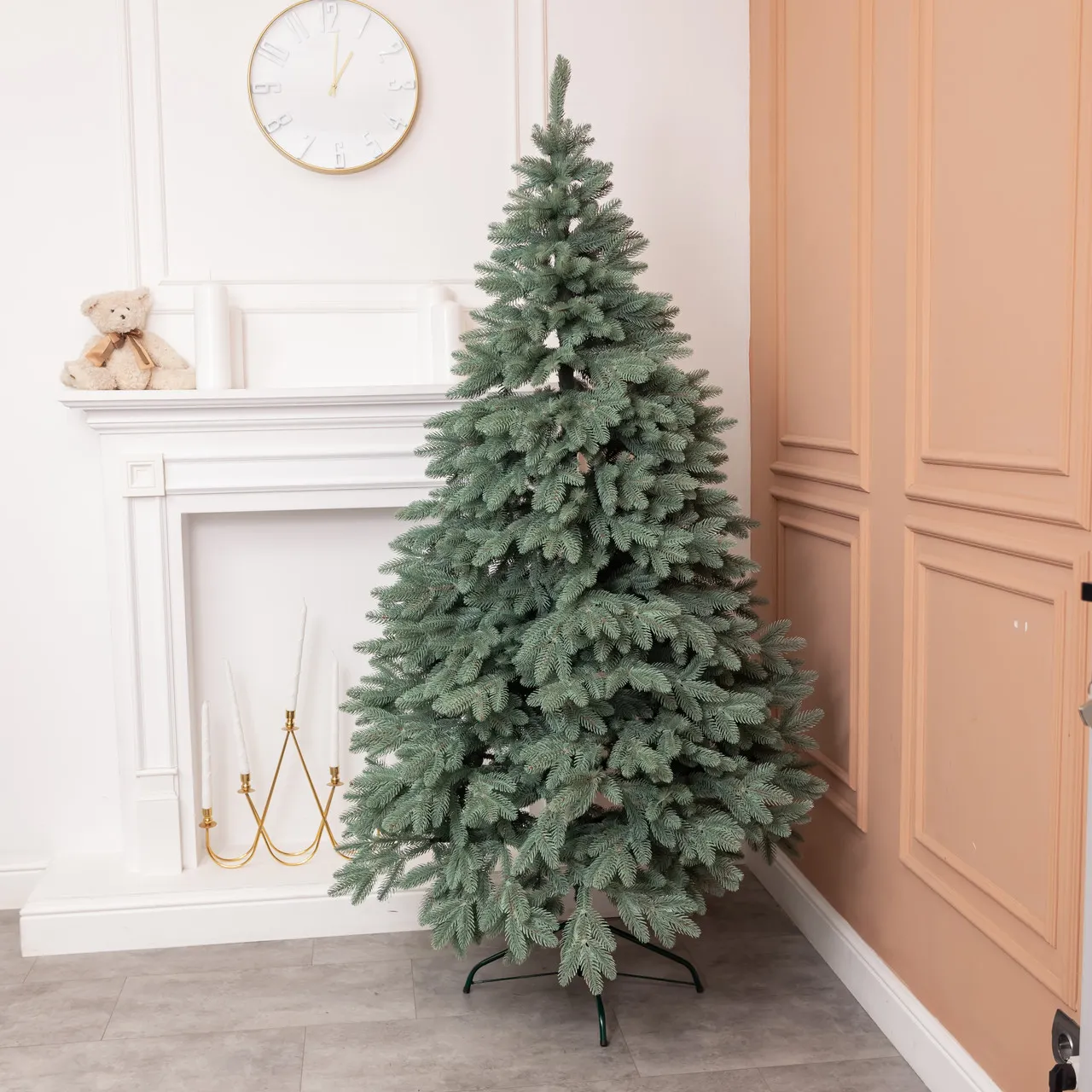 Кроме того, голубой цвет хвои создает оригинальное и стильное оформление интерьера, позволяя уйти от традиционных зеленых оттенков и добавить свежести в новогоднее оформление. Металлическая подставка обеспечивает надежную устойчивость даже на гладких поверхностях, что делает использование елки безопасным и комфортным в любых условиях.