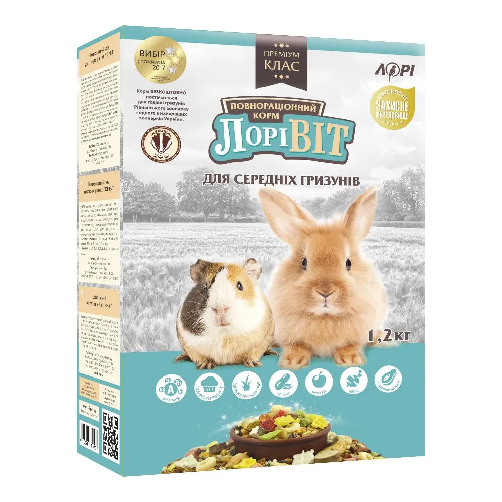 Лоривит - сбалансированный корм для морских свинок, декоративных кроликов, дегу и других средних грызунов, содержащихся в домашних условиях.