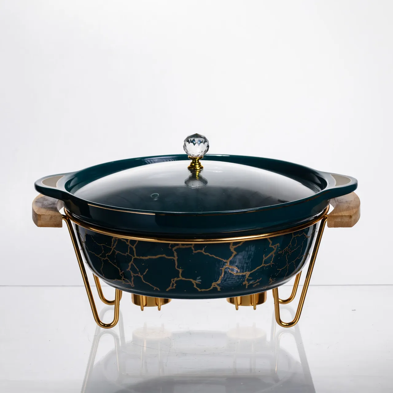 Мармит фарфоровый настольный круглый 2 (л) мармитница с подогревом Зеленый мрамор LC-715