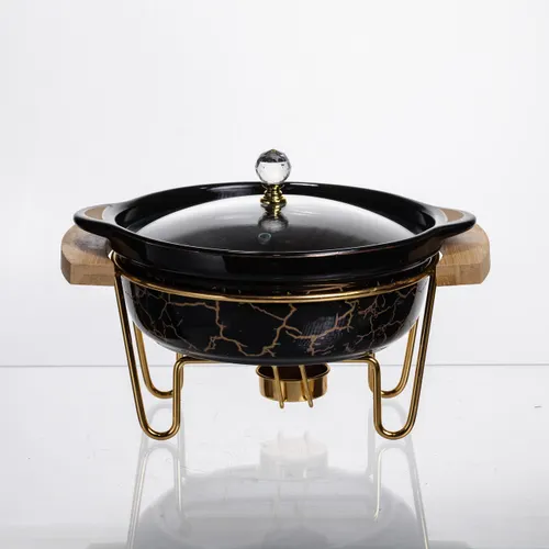Мармит фарфоровый настольный круглый 800 (мл) мармитница с подогревом Черный мрамор LC-716