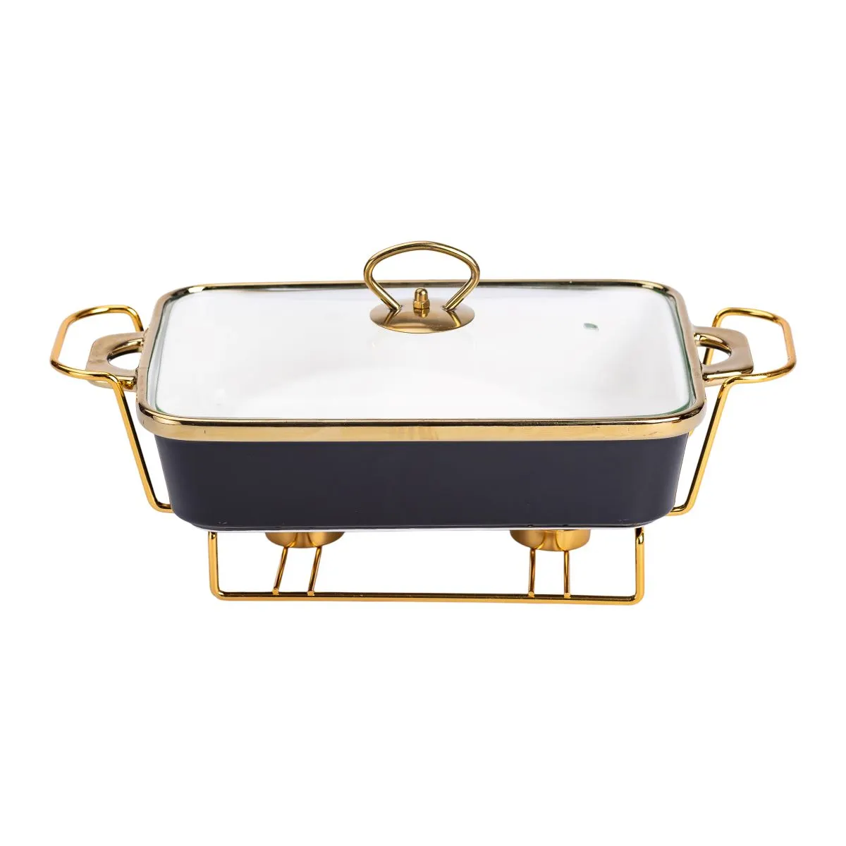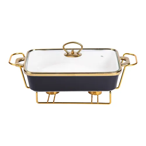 Мармит керамический со стеклянной крышкой 35.5х19х15.5 см на металлической подставке 1.5 л Черный HTJ-1002