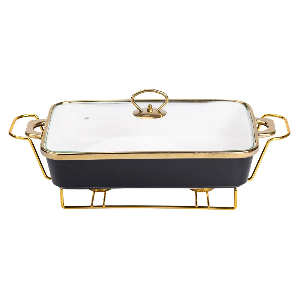 Мармит керамический со стеклянной крышкой 40х22.5х15.5 см на металлической подставке 2 л Черный HTJ-1003