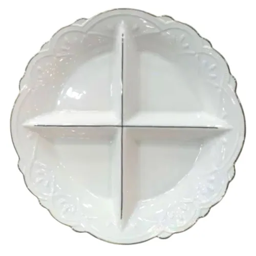 Диаметр 27 см и четыре секции — удобное решение для большинства случаев, обеспечивающее достаточное пространство для разнообразных блюд. Важно также выбирать изделия, легко совмещающиеся с остальной посудой по стилю и цвету. Белая менажница с позолотой является универсальным вариантом.