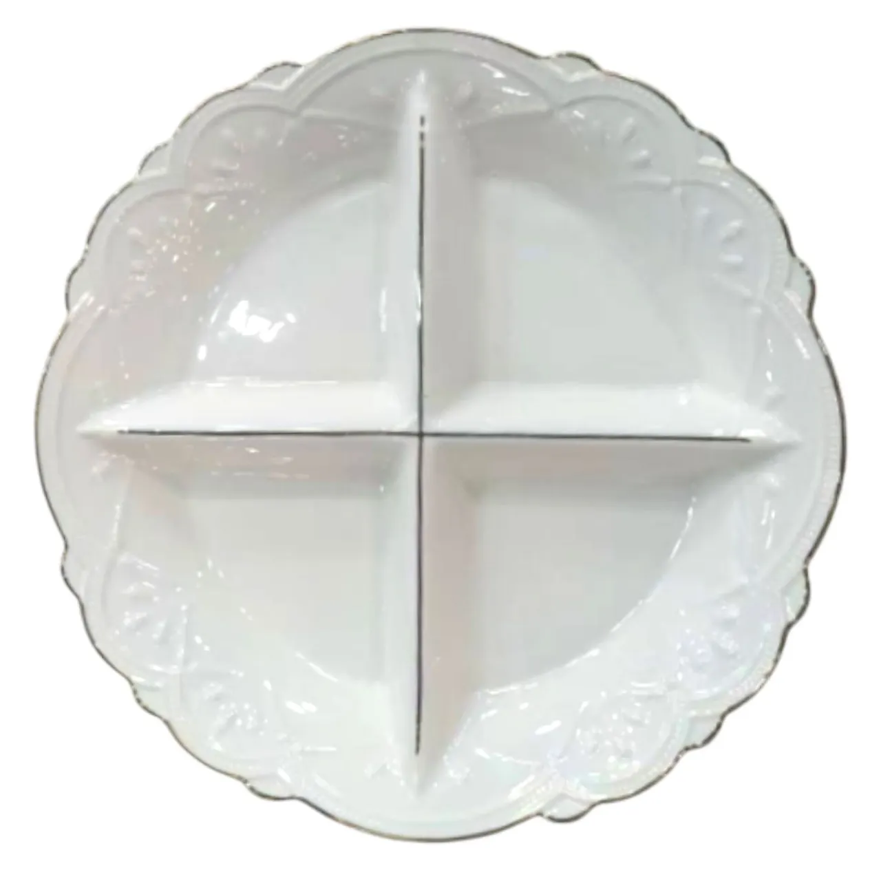 Менажница фарфоровая на 4 секции для закусок Ø27 (см) тарелка менажница круглая для сервировки Белая 120-YH-HG033