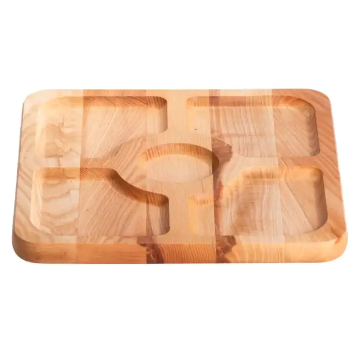 Экологичность и безопасность материала делают эту менажницу подходящей для ежедневного использования, а натуральный оттенок древесины создает элегантный внешний вид. Практичная прямоугольная форма с пятью отдельными секциями позволяет удобно разделять различные блюда, обеспечивая комфортную сервировку.