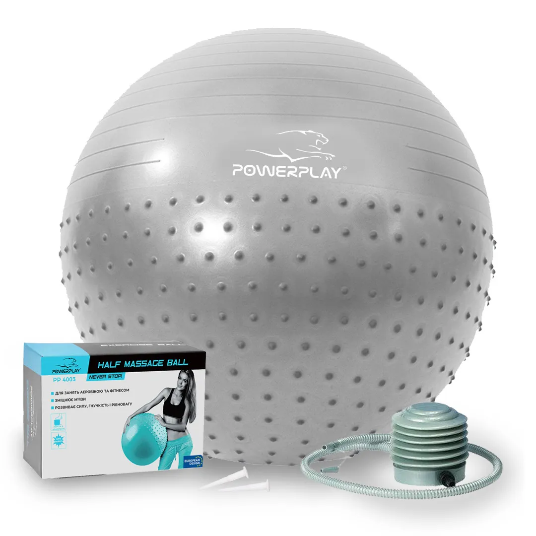 Мяч для фитнеса (фитбол) полумассажный PowerPlay 4003 Ø65 cm Gymball Серый + помпа