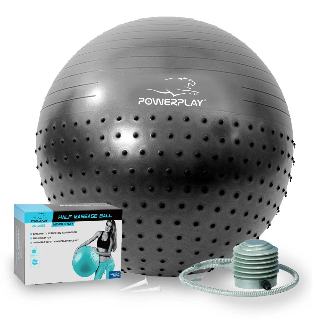 Мяч для фитнеса (фитбол) полумассажный PowerPlay 4003 Ø75 cm Gymball Тёмно-серый + помпа