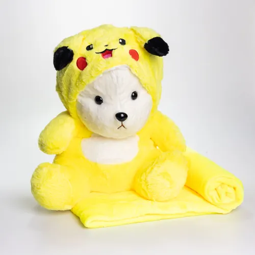 Мягкая игрушка-плед, подушка 3 в 1 Мишка Тедди в костюме Пикачу плед в игрушке 40×35×15 (см) детский плед игрушка Желтый 520-2Y