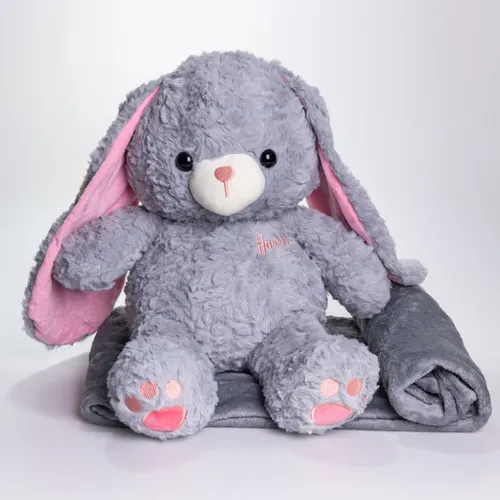 Мягкая игрушка-плед, подушка 3 в 1 Зайчик плед в игрушке 35×32×40 (см) детский плед игрушка Серый 509-9G