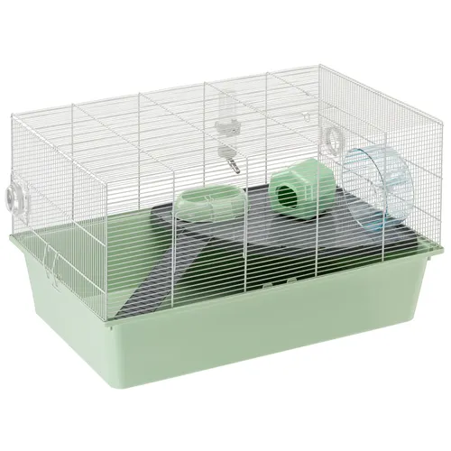 Клетка Milos XL от Ferplast предназначена специально для содержания мышей и хомяков, предоставляя безопасное и комфортное пространство для их жизни. Обладая габаритами 69,5 x 46 x h 41 см, она отличается большим объемом внутреннего пространства, что особенно важно для активных и любознательных питомцев. Конструкция выполнена из проволочной сетки с узким шагом, что предотвращает возможность побега питомцев и обеспечивает хорошее проветривание.
