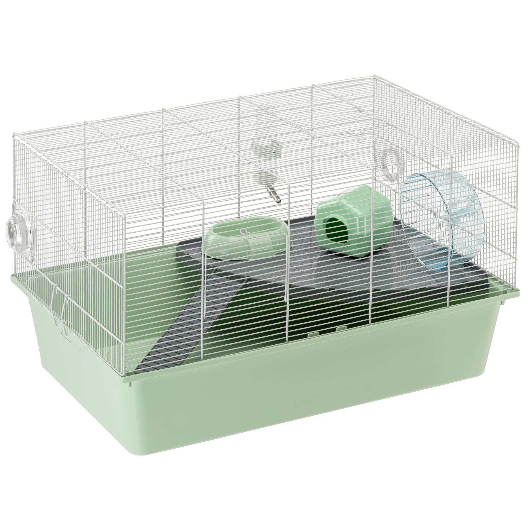 Milos XL обладает модульной конструкцией, которая позволяет объединять несколько клеток или добавлять дополнительные аксессуары, формируя сложную и просторную среду для грызунов. Такой подход обеспечивает гибкость содержания и возможность масштабирования пространства в зависимости от роста или изменения потребностей питомца.