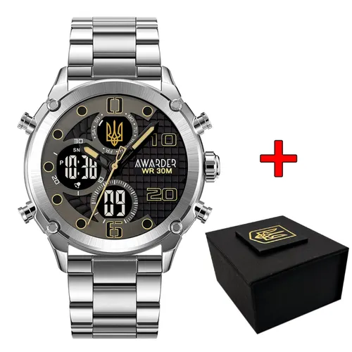 Мужские часы Awarder 017 "Тризуб" — это гармоничное сочетание традиционного украинского стиля и современных технологий. Они выполнены из высококачественной нержавеющей стали, что обеспечивает долговечность и надежность изделий. Благодаря своим материалам и конструкции эти часы подходят для активного повседневного использования.