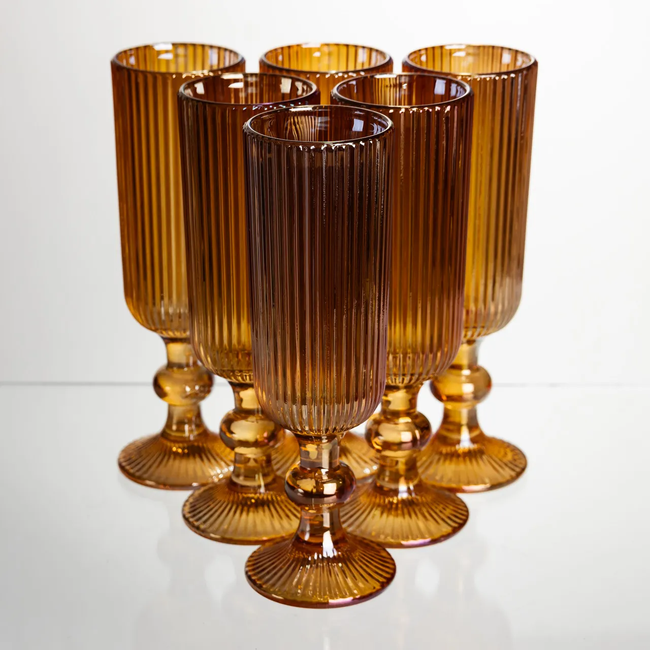 Характеристики "Набор бокалов для шампанского 6 штук 160 мл на ножке Янтарный Yiwu HP-19-211"