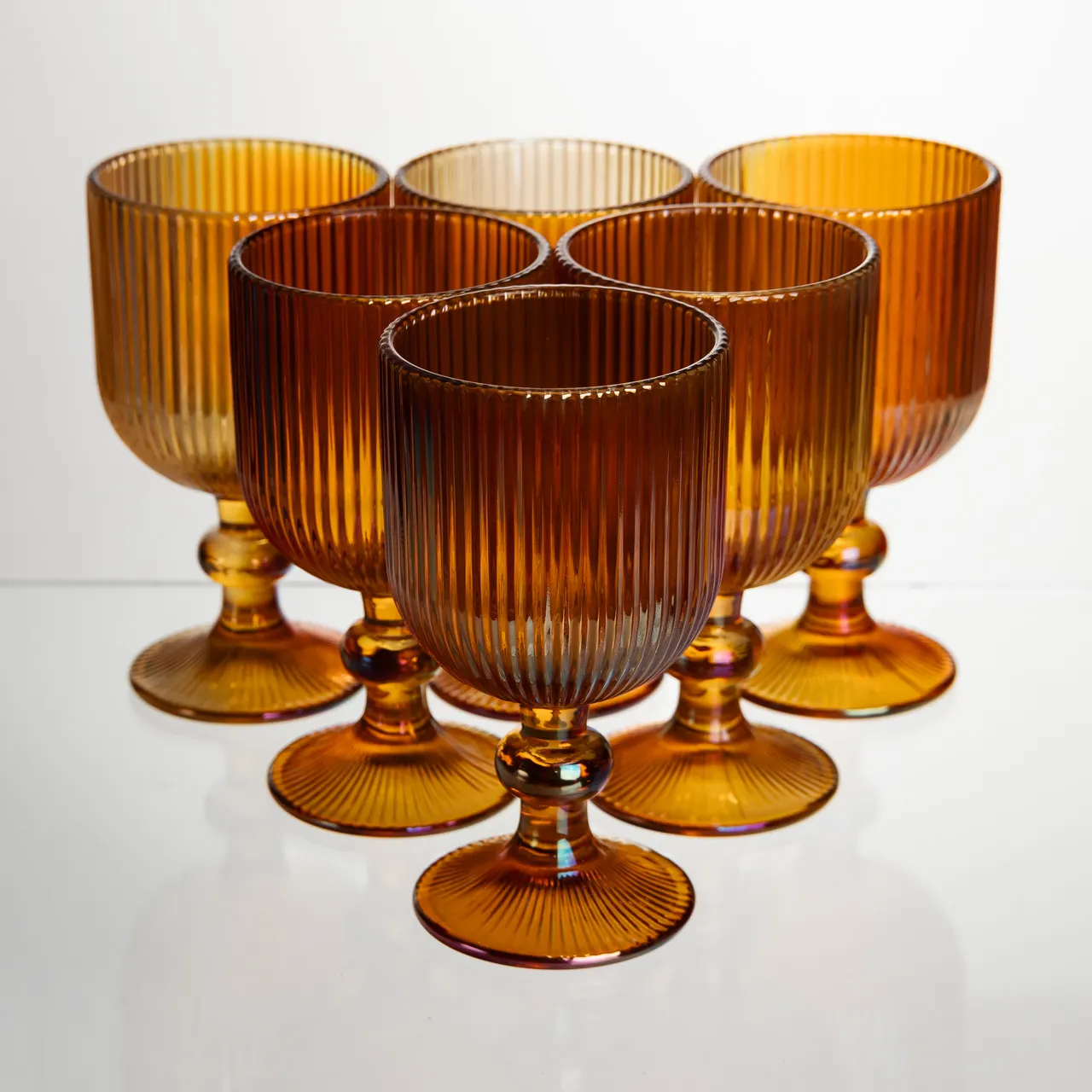 Характеристики "Набор бокалов для вина 6 штук 240 мл на ножке стеклянные Янтарный Yiwu HP-19-209"