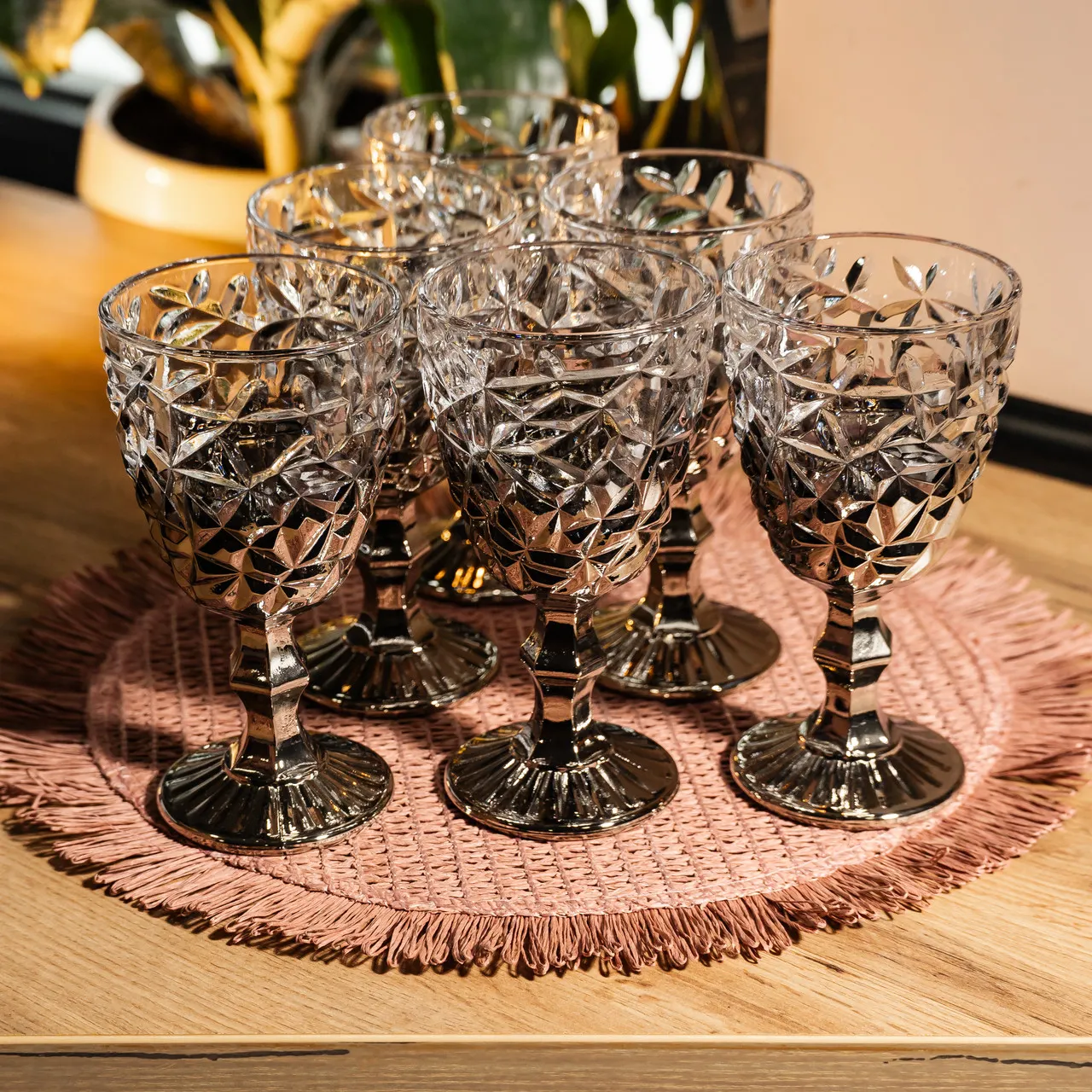 Характеристики "Набор бокалов для вина 6 штук 240 мл винные бокалы на ножке стеклянные фужеры для вина подарочные Серый HP-19-182"