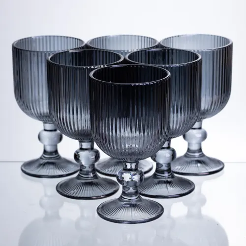 Характеристики "Набор бокалов для вина 6 штук по 240 мл ребристых из толстого стекла серый HP-19-230"