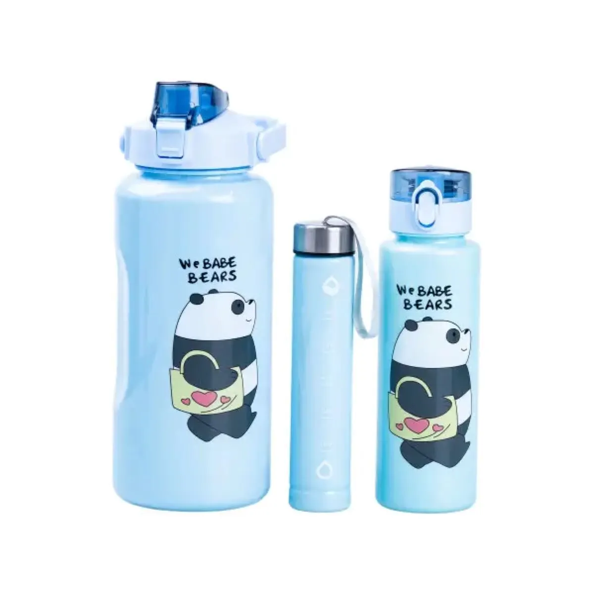 Набор бутылок 3 в 1 Панда с поилкой и ручкой 0.3 (л) 0.7 (л) 2 (л) Синий HPZSB120014BL