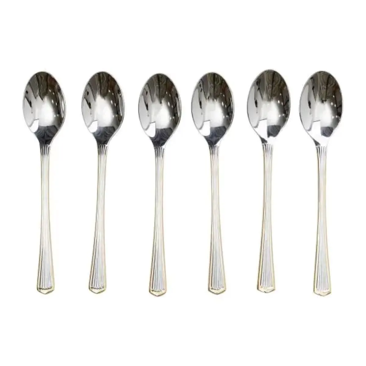 Набор чайных ложек 6 штук красивые ложки для чая из нержавеющей стали 15.3 см Серебро с золотой обводкой HP-20-33