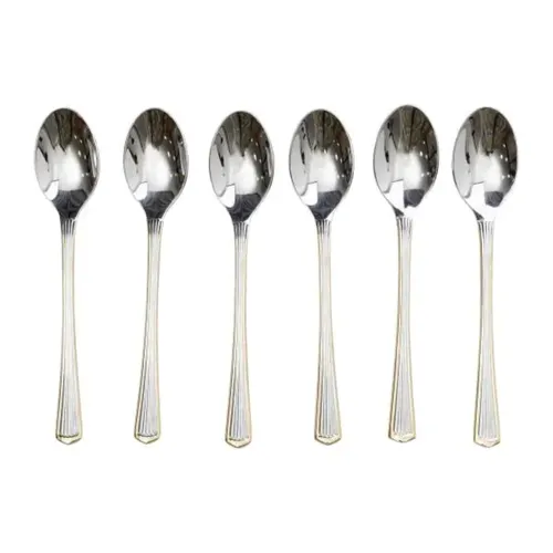 Характеристики "Набор чайных ложек 6 штук красивые ложки для чая из нержавеющей стали 15.3 см Серебро с золотой обводкой HP-20-33"