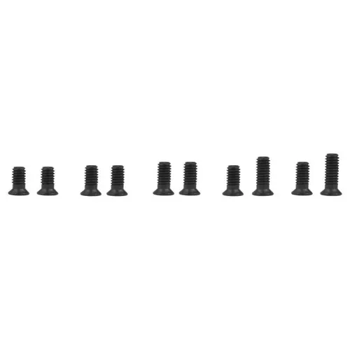 Набор включает десять винтов, размер которых варьируется от 4.5 до 7 мм. Винты рассортированы по упаковкам с пометками A, B, C, D и E с учетом их длины и совместимости с разными моделями ножей. Такая организация облегчает выбор нужного крепежа и ускоряет процесс замены.
