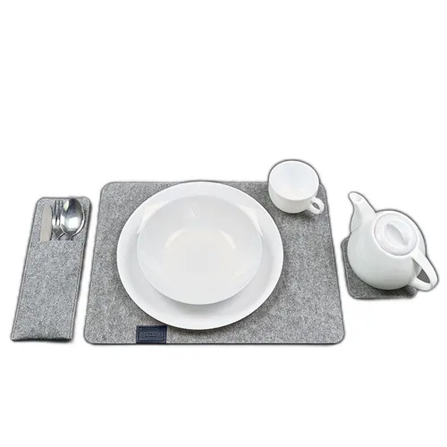 Его лаконичный дизайн позволяет использовать набор как в домашних условиях, так и в общественных заведениях, таких как кафе и рестораны. Применение натуральных материалов, таких как эко-фетр, способствует созданию уютной и приятной атмосферы вокруг обеденного стола.