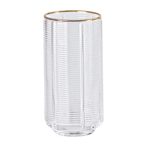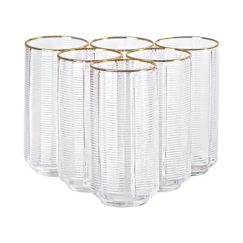 Этот набор из шести высоких стаканов объемом 400 мл предназначен для подачи лимонада, воды, сока и коктейлей. Изготовленные из прозрачного стекла с ребристой поверхностью, стаканы обладают эстетичным и практичным дизайном, который привлекает внимание и выгодно подчеркивает красоту напитков.